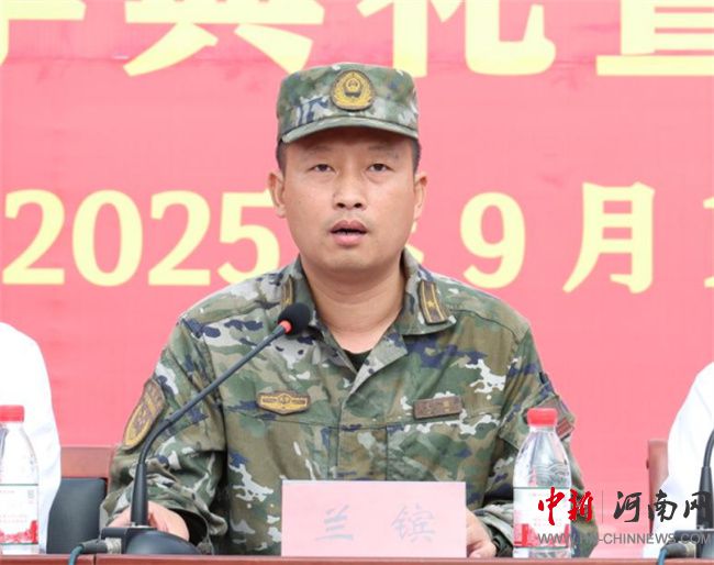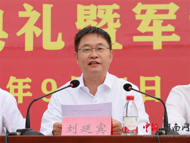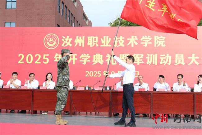 汝州職業(yè)技術(shù)學(xué)院黨委書記翟會杰為軍訓(xùn)團(tuán)授旗