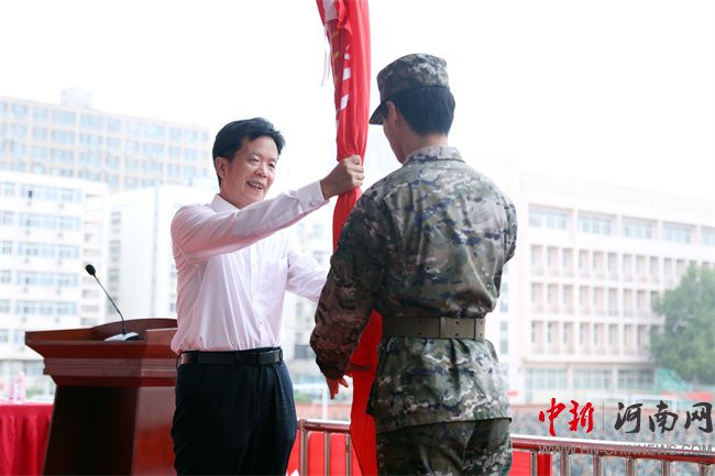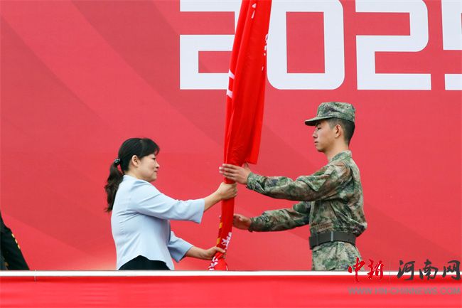 大會(huì)現(xiàn)場(chǎng),李廣慧、李志萍分別向兩校區(qū)軍訓(xùn)團(tuán)授旗。軍訓(xùn)教官代表張鵬、楊勇發(fā)出號(hào)召,鼓勵(lì)新生直面考驗(yàn)、超越自我,以昂揚(yáng)斗志開(kāi)啟迷彩青春。(河南水利與環(huán)境職業(yè)學(xué)院供稿)