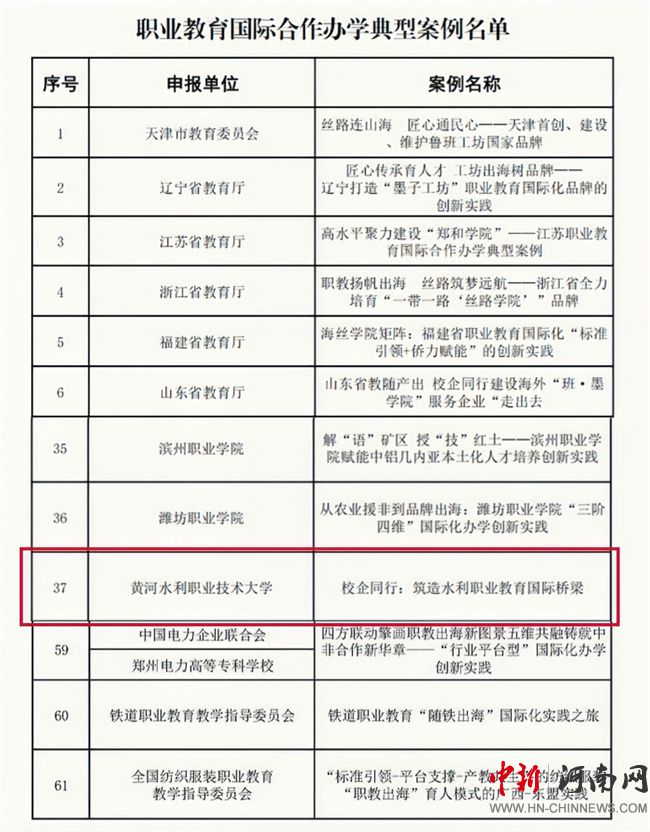 黃河水利職業(yè)技術(shù)大學(xué)“職教出!卑咐脒x全國職教國際合作典型案例