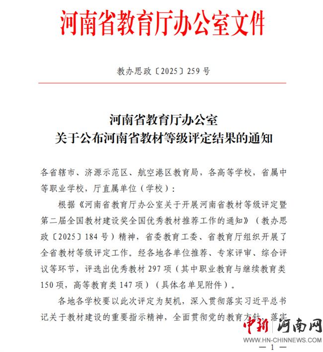 中新河南網(wǎng)10月15日電 根據(jù)《河南省教育廳辦公室關(guān)于開(kāi)展河南省教材等級(jí)評(píng)定暨第二屆全國(guó)教材建設(shè)獎(jiǎng)全國(guó)優(yōu)秀教材推薦工作的通知》(教辦思政〔2025〕184號(hào))精神,省委教育工委、省教育廳組織開(kāi)展了全省教材等級(jí)評(píng)定工作,評(píng)選出職業(yè)教育與繼續(xù)教育類優(yōu)秀教材150項(xiàng),黃河水利職業(yè)技術(shù)大學(xué)丁秀英、張夢(mèng)宇教授主編的《水閘設(shè)計(jì)與施工(第四版)》等9部教材入選并獲獎(jiǎng),其中特等獎(jiǎng)1部,一等獎(jiǎng)1部,二等獎(jiǎng)7部。