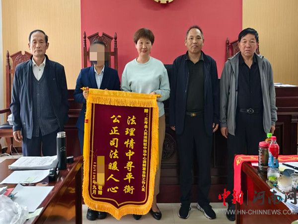 中新河南網(wǎng)9月24日電:9月23日上午,蘭考縣某小區(qū)物業(yè)公司負(fù)責(zé)人帶著錦旗走進(jìn)蘭考縣綜治中心,向縣法院入駐綜治中心的調(diào)解員送上一面印有“法理情中尋平衡 公正司法暖人心”的錦旗,感謝調(diào)解員高效化解了物業(yè)與業(yè)主之間的“心結(jié)”,解決了大問題。