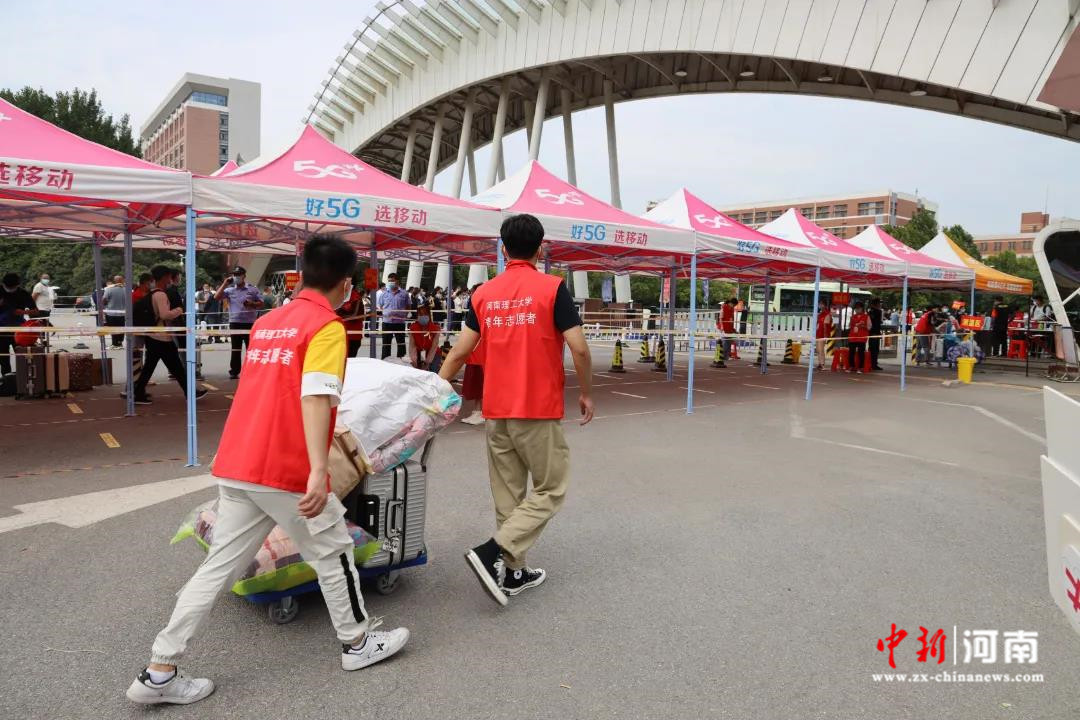 “你來,無論多大的風(fēng)雨,我要去接你。”在焦作市客運總站和火車站南北廣場,先后安排40余輛大型客車,24小時不間斷迎接新生,累計共發(fā)送近70車次。在校門口安排8輛觀光車以及教師志愿者自駕車等接送新生到報道點及宿舍。疫情原因,家長無法幫助學(xué)生搬運行李,為緩解新生的壓力,學(xué)校組織了1500余名“學(xué)生志愿者”和70余名“教工志愿者”組成“金牌服務(wù)隊伍”,服從工作組安排,與新生一對一進行愛心服務(wù),實現(xiàn)新生從“溫暖的老家”直達“溫馨的新家”。