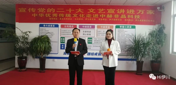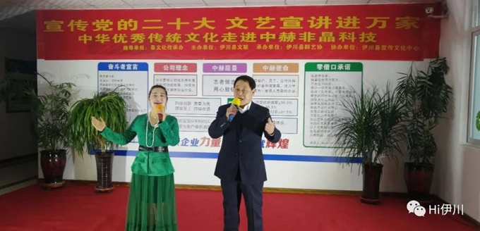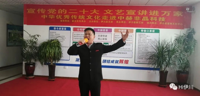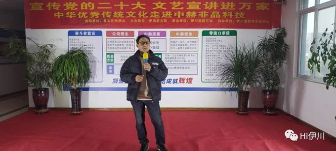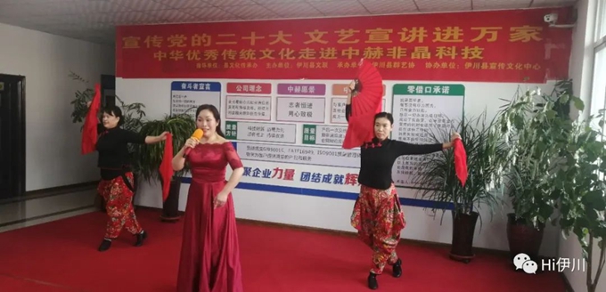 本次活動由伊川縣文化傳承辦指導,伊川縣文聯(lián)主辦,伊川縣群藝協(xié)承辦,伊川縣宣傳文化中心協(xié)辦。本次送文藝宣講進企業(yè)活動開展,由伊川縣群藝協(xié)文藝志愿者們結合黨的二十大精神,精心編排創(chuàng)作了歌曲、舞蹈、小品、朗誦等12個節(jié)目,為中赫非晶科技工人朋友們送去了一場精彩絕倫的文藝盛宴!